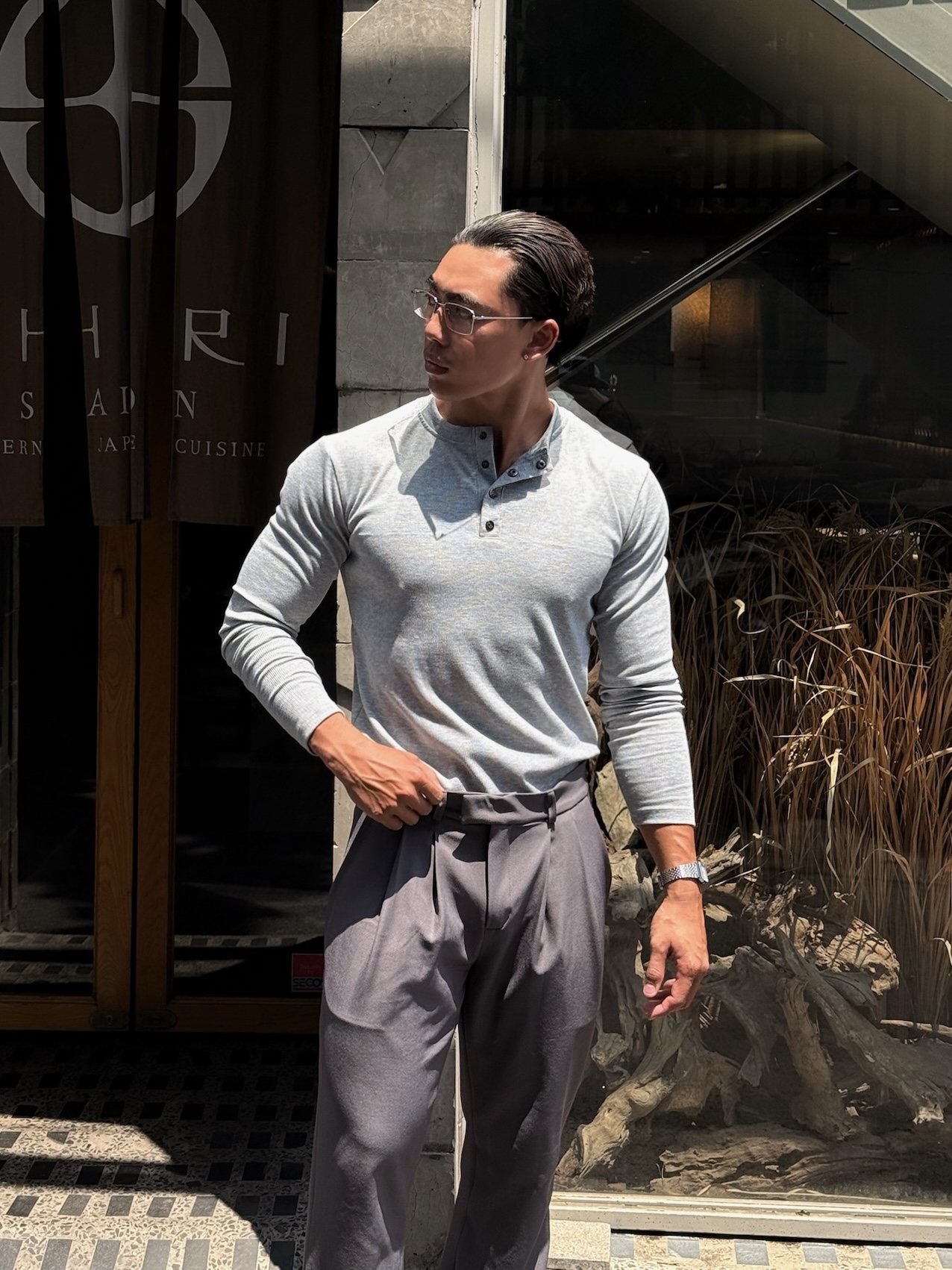 CW Henley Long Sleeves Shirt-Grey
